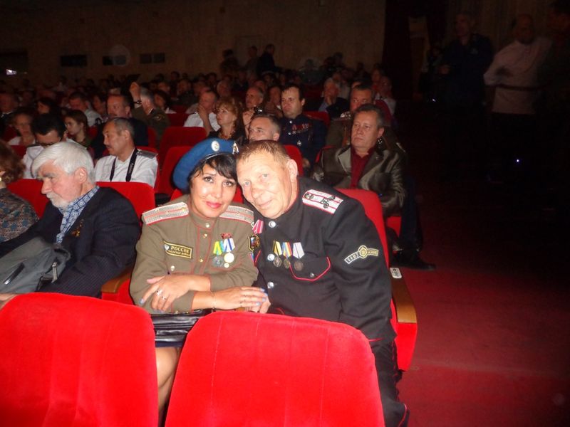 На всеобщий большой казачий круг Елена Высоцкая приезжала совместно с атаманом Толчиным Петром Александровичем, где г-н Толчин вручил г-же Высоцкой медаль «Алексий Человек Божий» за заслуги перед казачеством…за гуманитарную работу по Луганской области.