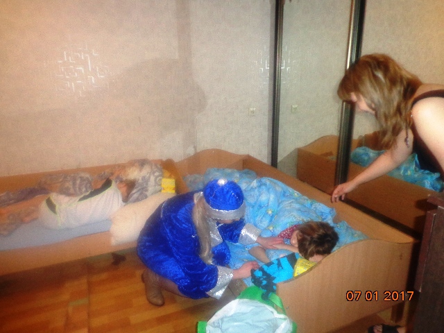 Вторая многодетная семья которую также посетил наш Фонд и привёз детишкам подарки, это семья Тепляковой Ирины Валерьевны, матери 5х детей, детишки уже спали когда мы нагрянули с подарками.